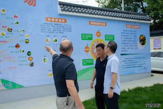 基地负责人杜方学主任,带领李校长和王校长参观基地建设进展。第一站,橘王广场,对橘王文化与故事进行了解,嫁接橘类的各品种细致观摩,了解志愿者们在该地开展的各种志愿活动,如枝丫修剪,草坪维护等。