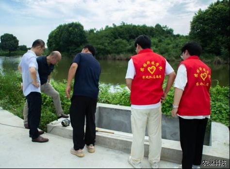 第二站,水产培育室,杜主任向李校长和王校长介绍水产培育室各类设施和设备,以及志愿者们在服务期间的主要工作内容,“农之队”的志愿者们利用专业知识协助基地开展水产培养工作,切实服务基地建设。